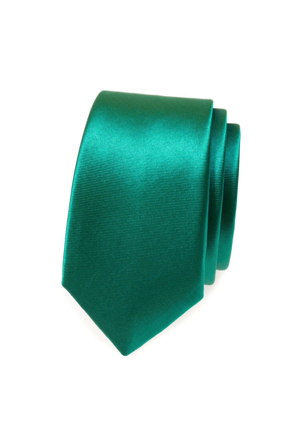 Lesklá slim kravata od českého výrobce Avantgard o šířce 5 cm s poutkem na zastrčení kratšího konce kravaty.